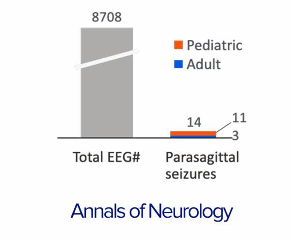 14 of 8,708 EEGs recorded over 4 years showed focal parasagittal seizures4