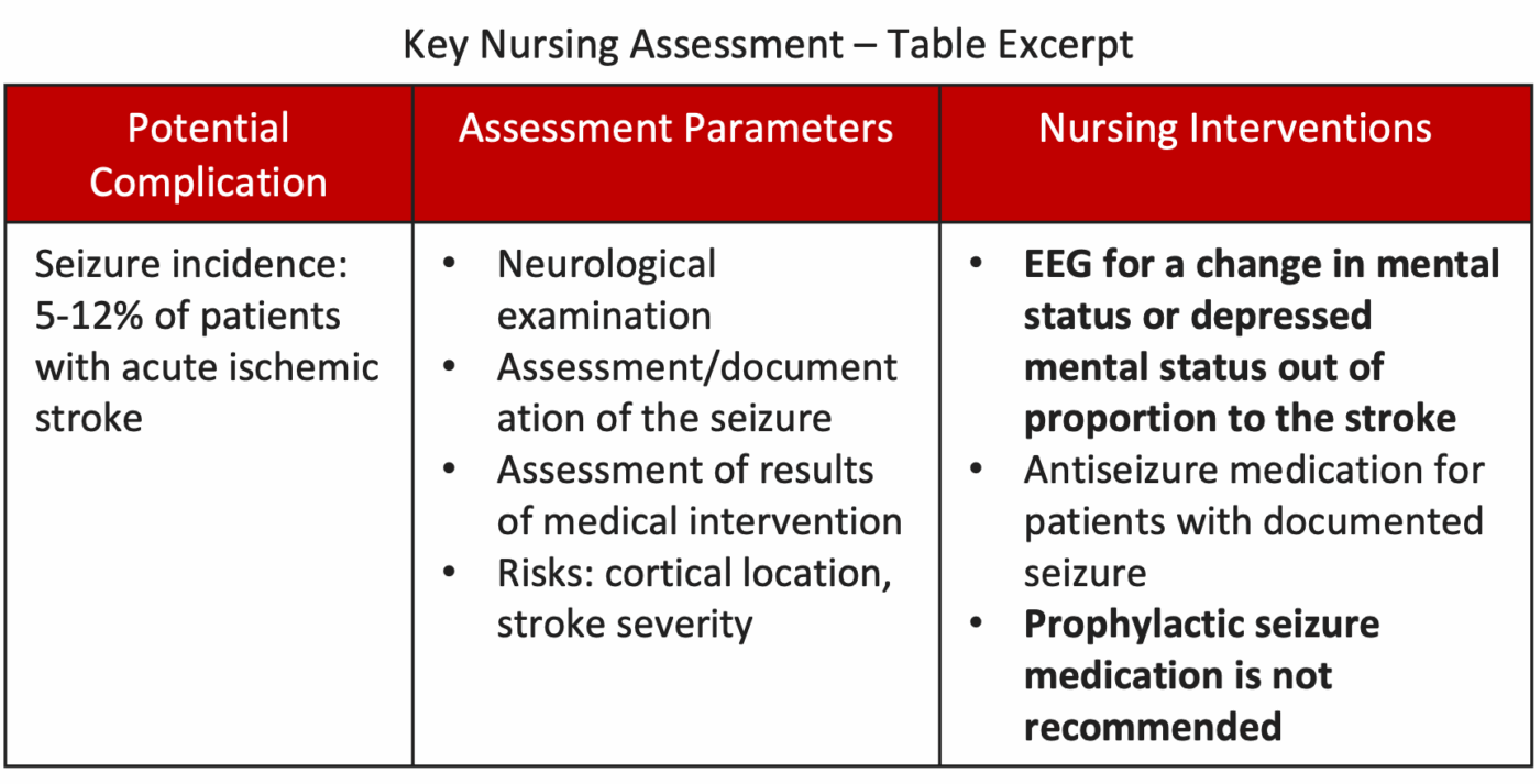 “EEG [is recommended] for a change in mental status or depressed mental status out of proportion to the [ischemic] stroke.”